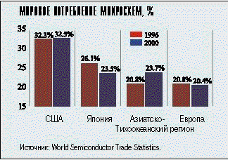 Легкий кризис. Падение уровня продаж, рост задолженности производителей и вынужденные остановки производства создали прошедшему году репутацию плохого для индустрии микросхем. Впрочем, если учесть, что сейчас отмечается экономический спад, то этот год можно считать просто конфеткой. Сначала рынок был переполнен излишками компонентов. Из-за перепроизводства микросхем памяти цены на них резко упали. Но это был всего лишь легкий кризис. Почему? Потому что уровень продаж ПК не снижается, а история учит нас, что свои худшие годы - середину 80-х и начало 90-х - индустрия полупроводников переживала именно тогда, когда спрос на ПК падал. Последние признаки этого кризиса сейчас исчезают: соотношение заказов и оплаченных сделок в октябре было максимальным за этот год и равнялось 1,1.