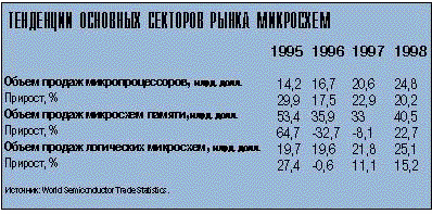 “Американские горки”. Периодические колебания цен на рынке микросхем остаются проблемой. Однако основные жертвы этих пульсаций - производители микросхем памяти - начинают с ними осваиваться. Цены на микросхемы памяти объемом 16 Мб падали столь стремительно, что руководители отрасли шутили: время их полураспада равняется трем месяцам. Снижение цен еще не прекратилось, но замедлилось (в сентябре они фактически выросли). Что произошло? Производители микросхем памяти, которые привыкли выпускать в громадных количествах все что угодно, сдерживают производство, даже если это означает неполное использование мощностей.