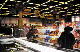 Новокосино - один из крупнейших новых районов столицы - начинается сразу за кольцевой дорогой. проживает здесь более 100 тысяч человек. Как и в других районах Москвы, здесь выстроились ряды палаток и торговых павильончиков, но главенствующую роль играет, разумеется, универсам “Новокосинский”. Построенный в середине 80-х годов и одно время процветавший, к середине 90-х универсам утратил свои позиции - видимо, его коллектив не смог сразу найти своего места в рыночных отношениях.