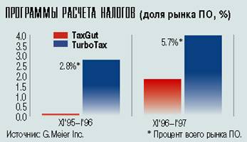 Это самое неприятное время, если только вы не разработчик ПО для расчета налогов. По сравнению с прошлым годом доля двух ведущих программ увеличилась на рынке ПО почти на 49%. Программа Tac Cut компании Kiplinger произвела много шума, но все же пока она уступает фавориту прошлого года -программе TurboTax.