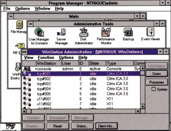 Многопользовательская версия Windows NT фирмы Citrix Systems позволяет выполнять на СК удаленные Windows-сеансы, предоставляя пользователям доступ к любым необходимым ПК-приложениям. В некоторых случаях, например при использовании HMX фирмы NCD, возможности Web-браузера, предоставляемые СК, это всего лишь удаленный сеанс работы с Windows-версией Navigator корпорации Netscape Communications или Internet Explorer корпорации Microsoft.