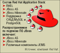 В состав нового набора приложений Red Hat Application Stack входят RHEL (Red Hat Enterprise Linux), JBoss AS (Application Server) и JBoss Hibernate, а также техническая поддержка двух открытых СУБД - MySQL и PostgreSQL.