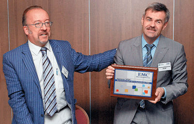 Люк Брюне (слева) вручает Владимиру Колганову сертификат