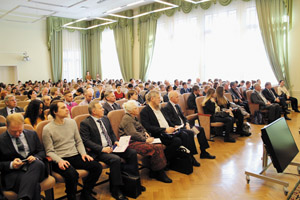 В 10:00 началось заседание пленарного заседания конференции ИТиММ-2018, которое открыл проректор по научной деятельности РЭУ имени Г.В. Плеханова В.Г. Минашкин. Выступающий подчеркнул, что эта конференция, посвящённая памяти выдающегося плехановца А.И. Китова, внёсшего значительный вклад в становление и развитие отечественной и мировой информатики, стала заметным научным явлением в масштабе всей страны. Уже восьмой год в нашем университете собираются ведущие российские учёные, специалисты, представители бизнес-сообщества, а также иностранные гости, чтобы обсудить возникающие вызовы цифровой экономики и пути их решения. В.Г. Минашкин отметил актуальность проблематики конференции и пожелал её участникам интересной и плодотворной работы.