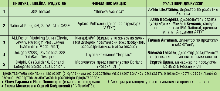 В дальнейших частях обзора мы коснемся модельных, технологических характеристик рассматриваемых CASE-систем, а также анализа деятельности их поставщиков.