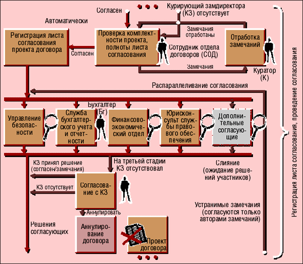 Рис. 2. Согласование договоров - это многоэтапный процесс, в котором принимают участие многие