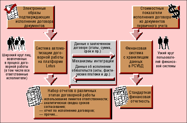 Рис. 5. Интеграция системы автоматизации договорной работы с финансовой системой
