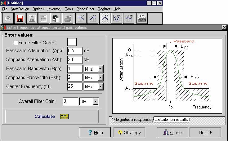 Наглядный ввод задания на проектирование фильтра в программе Filter Wiz