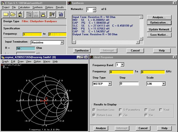 Serenade и Series IV. Синтез фильтров в СВЧ-исполнении обеспечивают пакеты Serenade фирмы Compact Software (www.comsoft.com), Series IV подразделения EEsof компании Hewlett-Packard (www.tmo.hp.com) и MMICAD фирмы Optotek (www.optotek.com). Наибольшими возможностями обладает пакет программ Series IV, имеющий в своем составе программы синтеза E-Syn расчета параметров отрезков линий передачи LineCalc. Программа MMICAD способна рассчитывать фильтры на поверхностных акустических волнах.