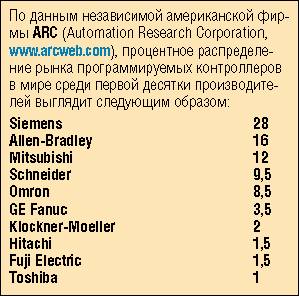 По оценкам независимых компаний, таких, как Automation Research Corporation (USA), доля программируемых логических контроллеров SIMATIC на мировом рынке составляет 28%, т. е. они лидируют с большим отрывом.