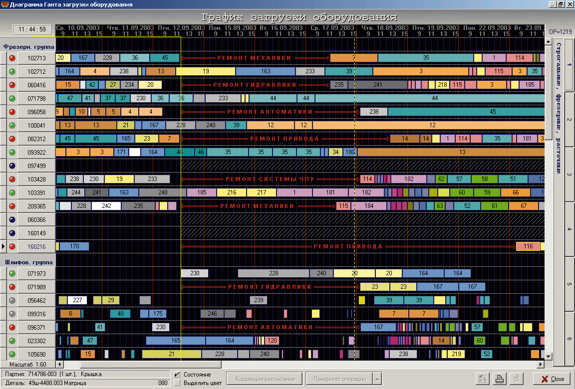 Рис. 4. Пример планирования с учетом ремонта оборудования в системе "Фобос"