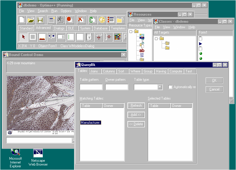 Разработчики смогут создавать OLE-серверы, элементы управления OLE или обычные элементы управления с учетом объектно-ориентированных особенностей классов Си++. 0ptima++ будет включать в себя также интегрированный отладчик и поддержку контроля памяти и библиотек.