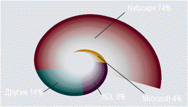 Только просмотр. Помните, как аналитки говорили, что на программах просмотра не разбогатеешь? А в первом квартале Netscape продала их на 33 млн. долл. и контролирует по разным оценкам от 70 до 80% рынка. Стратегия Microsoft, бесплатно включающей программу просмотра в ОС Windows, позволяет ей проникнуть на рынок, но вовсе не за счет Netscape. ПО Navigator Version 3.0 было представлено весной, а следующая версия должна выйти к концу года.
