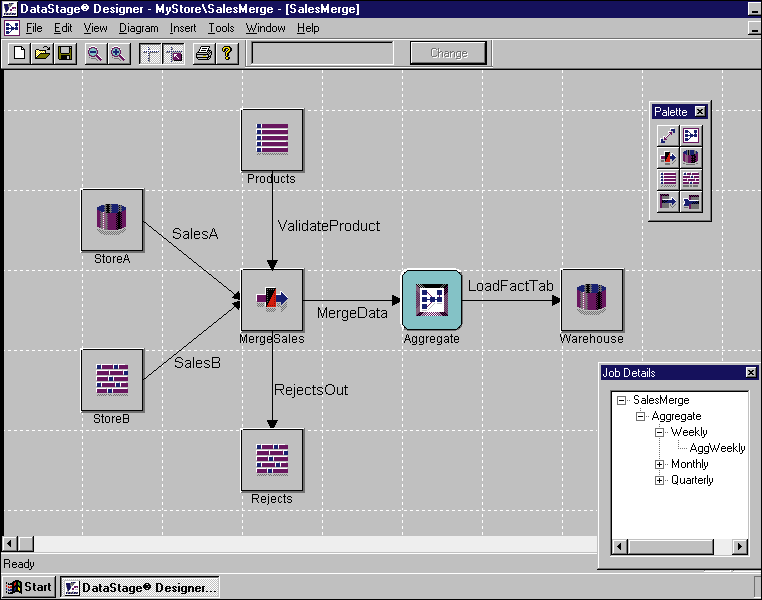 Коммерческая версия DataStage, которая должна появиться в январе 1997 г., будет состоять из четырех компонентов: Designer - для моделирования процесса преобразования данных, Repository - для импортирования и редактирования метаданных, Director - для планирования работ и Server - для выполнения процесса преобразования.