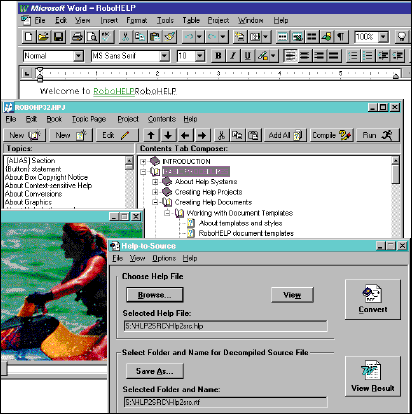 Пакет содержит инструменты подготовки файлов помощи для разнообразных сред: Windows NT Help, Windows 95 Help, Windows 3.1 Help, HTML Help корпорации Microsoft и NetHelp корпорации Netscape Communications.