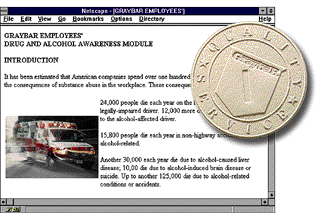 Прототип одного из учебных модулей Graybar о политике фирмы в отношении алкоголя и наркотиков уже используется. В нем для проверки усвоения сотрудниками политики компании применены задания со множественным выбором. Обучение по этому модулю началось в конце сентября. Обучаемые будут отвечать на каждый вопрос просто щелчком мыши на HTML-связи. Ответы будут немедленно переводиться в базу данных модуля посредством связующей программы IBT Class и главного компонента IBTauthor. Попадая в базу данных, ответы оцениваются как правильные или неправильные, а результаты поступают к администратору курса.