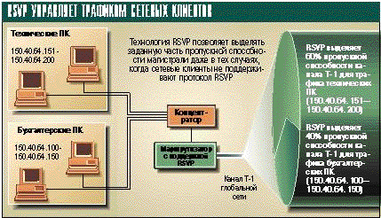 Технология RSVP позволяет выделять заданную часть пропускной способности магистрали даже в тех случаях, когда сетевые клиенты не поддерживают протокол RSVP