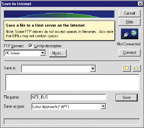 В ходе экспертизы в Тестовом центре PC Week Labs средства публикации в Web коммерческой версии Approach 97 показали свою нежизнеспособность. Организациям, планирующим доступ к корпоративным данным через Internet, следует искать другие варианты, так как Approach обеспечивает только статический экспорт таблиц и не конвертирует графические элементы (например, таблицы и диаграммы) в изображения.
