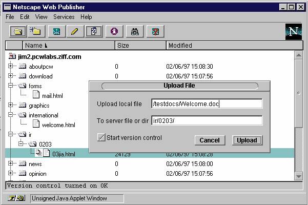 Написанный на Java клиент Web Publisher корпорации Netscape облегчает редактирование и публикацию документов в Enterprise Server 3.0