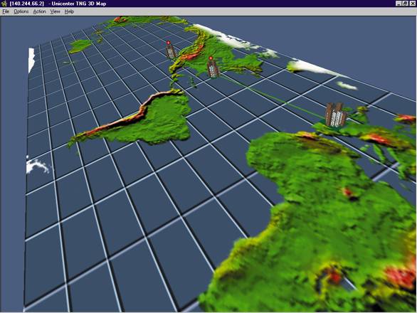 Интерфейс Unicenter TNG сообщает о неполадках, отмечая место их возникновения цветными шариками, что позволяет администратору детально рассмотреть соответствующие участки сети и не только определить причину сбоев, возникших в сотнях миль от центра управления, но и устранить ее.