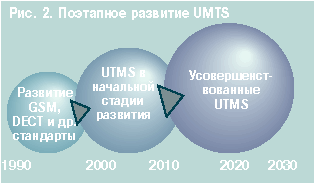 Благодаря членству страны в Международном союзе электросвязи, а также соглашениям о сотрудничестве бывшего Минсвязи (ныне Госкомсвязи) с ETSI российские специалисты имеют определенные организационно-правовые условия для участия в проектах UMTS и IMT-2000. Необходимо иметь в виду, что при создании мобильных систем первого поколения (до 1990 г.) российские НИОКР проводились параллельно с аналогичными зарубежными работами и привели к созданию отечественных радиосетей, полностью несовместимых с зарубежными сетями. Системы второго поколения пришли в Россию со значительным опозданием, на 3 - 4 года позже, чем в развитые страны. В результате Россия отстала от других стран как в распространении мобильной связи (в России в 1996 г. мобильной связью было охвачено 0,2% населения, тогда как в развитых странах 5 - 20%), так и в области ее доступности и стоимости соответствующих услуг.