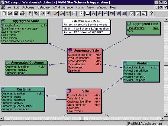 Модуль Warehouse Architect пакета S-Designor 6.0 поддерживает такие специфические для хранилищ данных конструкции и процессы, как схемы “звезда” и “снежинка”, агрегирование и объединение.