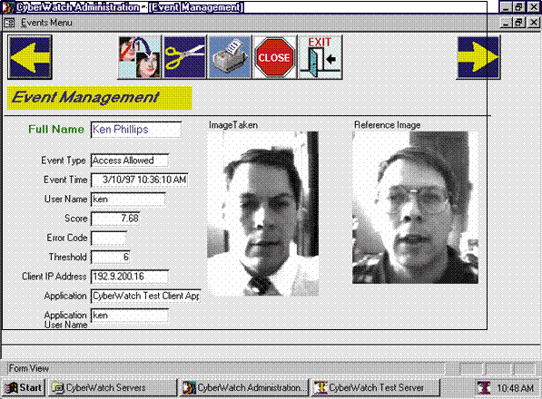 К сильным сторонам TrueFace CyberWatch следует отнести возможность ревизии системы. Система ведет контрольный журнал, в котором регистрируются все попытки доступа, как успешные, так и отвергнутые. Сюда же заносятся и все сделанные при этом фотографии. Сравнив их со снимками из базы данных и убедившись, что отказ в доступе получил легитимный пользователь, администратор может сразу же добавить его изображение в соответствующий файл. Эта функция особенно удобна в тех случаях, когда кто-либо из сотрудников возвращается из отпуска загоревшим и бородатым или приходит из больницы с повязкой на лице.