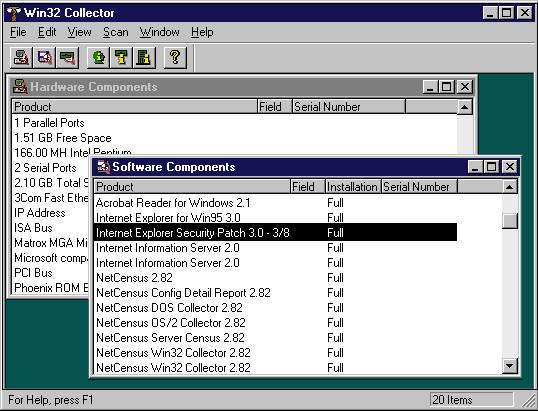 Специалисты Тестового центра PC Week Labs с помощью версии 2.82 программы проследили за наличием неисправленных копий Internet Explorer версий 3.0 и 3.01 корпорации Microsoft. Выполняя инструкции, находящиеся на Web-узле корпорации Tally, мы вставили в NetCensus функцию распознавания рекомендуемых исправлений средств защиты (для различных версий).
