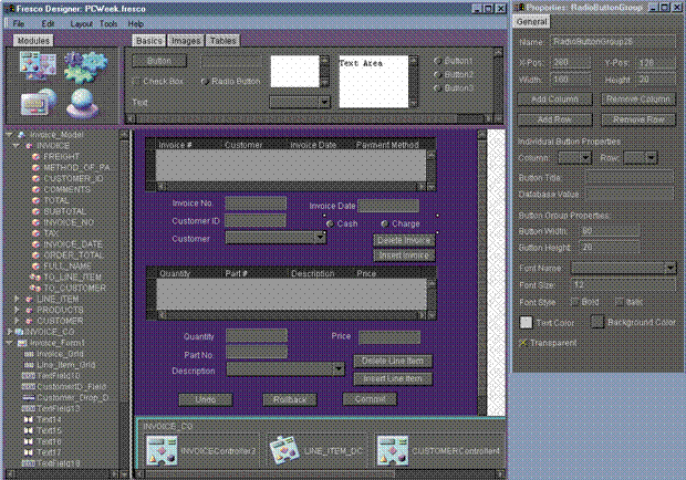 Средства быстрой разработки приложений (RAD) на Java пока находятся в младенческом возрасте, и написанная на Java среда разработчика Fresco Designer (см. рисунок) в чем-то оказалась удачной, а в чем-то нет. Мы протестировали Designer под Windows NT и были поражены удобством этого инструмента, учитывая то, насколько трудно пока писать интерфейсы на Java.