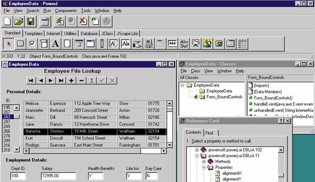Теперь PowerJ “созрел” настолько, что Моразейн предпочитает его пакету Visual Cafe for Java корпорации Symantec, который он также тестировал применительно к школьным приложениям. По его словам, PowerJ, в отличие от Visual Cafe, обеспечивает программистам, занимающимся одним и тем же проектом, более простой доступ к наработкам друг друга.