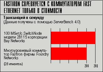 Многоуровневый коммутатор FastIron (цена $15 790) и коммутирующий маршрутизатор NetIron ($21 454) имеют по 16 портов Fast Ethernet и до двух разъемов для подключения Gigabit Ethernet. Подобно SwitchNode фирмы Bay Networks, FastIron предназначен для установки перед маршрутизатором, чтобы разгрузить IP-трафик. При этом и SwitchNode, и NetIron могут функционировать независимо в IP-среде.