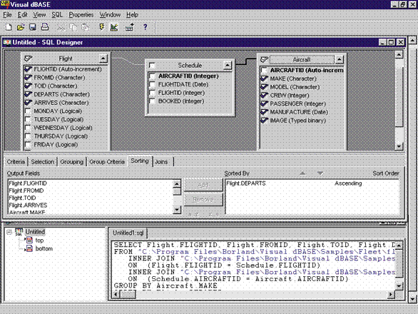 Графический построитель запросов dBASE генерирует операторы SQL “на лету”