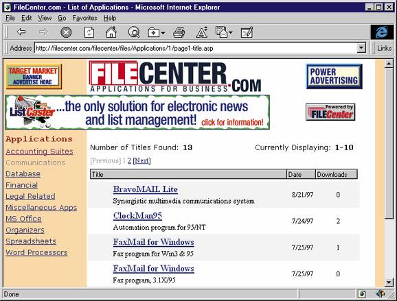 FileCenter работает вместе с ПО IIS (Internet Information Server) корпорации Microsoft, позволяя компаниям устанавливать и поддерживать в Internet узел распространения условно-бесплатного ПО.