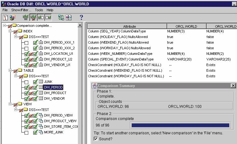 Впрочем, есть у DB Diff и некоторые недостатки. Этот мастер не слишком точен в сравнении зависимостей и ограничений представлений данных и игнорирует статистические представления и гистограммы. Более того, при сравнении описаний во внутреннем формате Change Management Pack, автоматически полученных путем анализа прикладных БД, он показал себя недостаточно надежным.