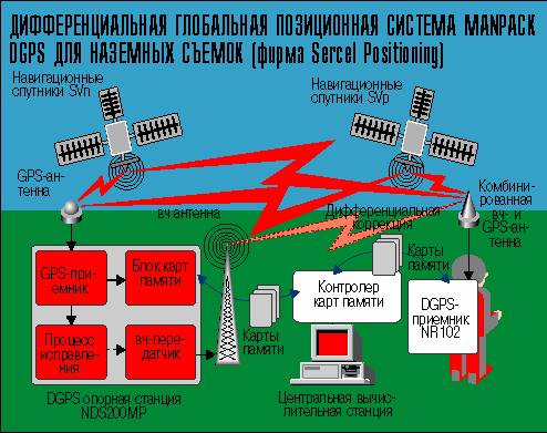 Приемник располагается в точке с известными координатами. Он постоянно определяет по сигналам навигационных КА свои координаты, сравнивает их с точными значениями, вычисляет погрешности и ретранслирует их по радиоканалу на расстояние до 500 км ( в зависимости от вида радиосвязи). Все приемники, находящиеся в радиусе приема и способные работать в дифференциальном режиме, благодаря этим поправкам обеспечат точность местоопределения в реальном масштабе времени до единиц метров. Для задач точной геодезии, топографии и картографии после дополнительной обработки результатов измерений достигается точность в единицы сантиметров.