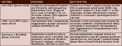 Кэширование данных способно значительно снизить нагрузку на “Всемирную паутину”, однако эта технология все еще не получила широкого применения из-за высокой стоимости и отсутствия поддержки мультимедийного трафика. К счастью, в ближайшее время положение может измениться: фирмы Cobalt Networks и InfoLibria, корпорация Inktomi, ряд других производителей уже готовят новые продукты, которые помогут решить эту проблему.