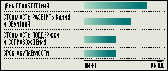 ( + ) Высокая производительность; сравнительно низкая цена в расчете на 1 Мб хранения; масштабируемость.