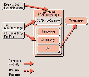 Составная структура не является ни обобщением структурной модели SOAP, ни обобщением конверта SOAP и не определяет модель обработки основного сообщения (все эти задачи отводятся спецификации SOAP). Это просто абстрактная модель, базовые "правила игры", которым нужно следовать при дальнейшей реализации привязок SOAP к конкретному транспортному протоколу. В действительности спецификация склоняется к привязкам к протоколу HTTP.