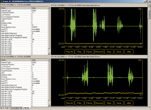 Администраторам будет несложно вызвать окно звукового сигнала для раздельного воспроизведения голоса на обеих сторонах соединения, чтобы сетевые инженеры могли услышать голос так, как его слышали реальные участники телефонного разговора (см. рисунок).
