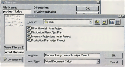 Программы Name-It for Windows 95 фирмы Vertisoft и Long File Names for Windows 95 фирмы View модифицируют диалоговые окна в приложениях под Windows 3.1 так, что они могут считывать и записывать длинные имена файлов. Это является одной из ключевых возможностей Windows 95.