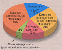 Если российские компании предлагают карьеру, обучение, интересные проекты и уникальные отношения в коллективе в обмен на квалификацию специалиста, то зарубежные фирмы выбрали иной путь подбора ИТ-кадров. Предлагается очень привлекательный комплекс мотивационных мероприятий (как правило, речь идет о “белой” зарплате, причем значительно выше рыночной, полном социальном пакете, дорогом офисе, пышных корпоративных мероприятиях и т. д.), и привлекательность таких компаний на кадровом рынке продолжает расти.