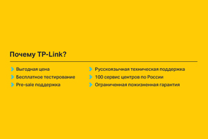 Компания TP-Link — лидер по продажам Wi-Fi оборудования в мире* и России** на протяжении многих лет; в 2016 году компания TP-Link заняла 2 место по количеству проданных Ethernet — коммутаторов: по количеству проданных портов (в устройствах)***. Сегодня компания предлагает оборудование для бизнеса и в основе здесь интересная цена, международная система качества. Некоторые известные сети сотрудничают уже многие годы.
