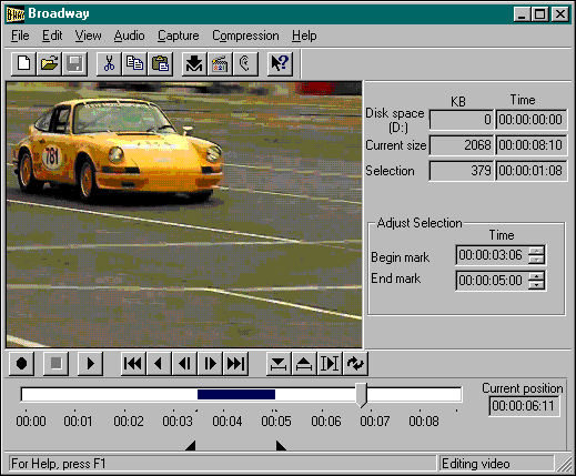 Созданный для работы под управлением среды Windows, Broadway дает возможность принимать сигнал с видеокамеры или видеокассеты и записывать его в цифровой форме на CD-ROM, на жесткий диск или передавать по сети.
