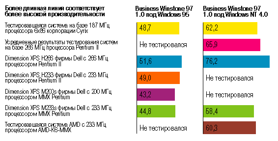 Результаты тестов производительности показывают незначительные преимущества 233 МГц процессора Pentium корпорации Intel.Майкл Кейтон (PC Week Labs)