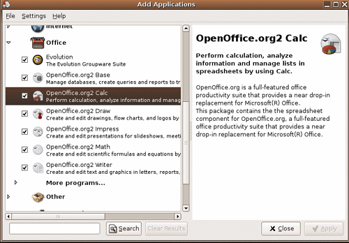 Что касается Ubuntu 5.10, то по отдельному каналу предоставляется доступ и к лицензионным программным пакетам. Не ограничиваясь официально поддерживаемыми репозиториями с базовыми и дополнительными приложениями, мы настроили Ubuntu на подключение и к другим таким хранилищам, в результате в нашем арсенале сразу оказалось 17 тыс. программ против прежних 4000.
