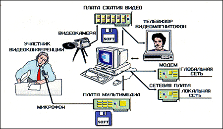 Здесь необходимо сделать небольшое разъяснение и сказать несколько слов в защиту систем видеоконференцсвязи. Низкое качество видео па экране определяется не столько возможностями системы или мощностью компьютера, сколько ограничениями используемого сетевого оборудования. Как вы знаете, одна секунда видеоизображения в цифровом виде - это более 20 Мб. Пропускная способность дисковой подсистемы компьютера - 1-1,5 Мб/с, скорость чтения CD-ROM - 300 Кб/с. Поэтому при воспроизведении видео на экране компьютера применяются мощные алгоритмы сжатия, реализованные как программно, так и аппаратно. Системы мультимедиа уже позволяют достигать приемлемого качества видео, особенно при использовании стандарта сжатия MPEG. Однако скорость передачи данных по линиям связи - особенно если вы собираетесь использовать для видеоконференцсвязи обычную телефонную линию - может стать критической. Попробуйте "на лету" сжать 20 Мб до 16Кбит - и вы поймете, почему так неуклюже выглядит картинка в большинстве систем видеоконференцсвязи.