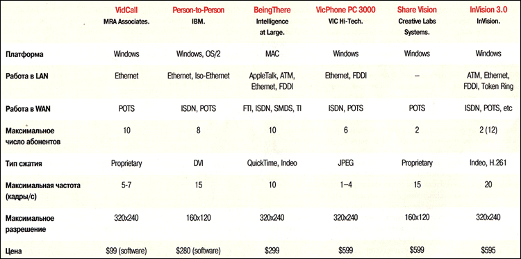 Чем отличается хороший кофе от плохого? Вкусом. Чем отличается лучший кофе от хорошего? Рекламой. Эта пословица отчасти объясняет высокие цены на престижные системы видеоконференцсвязи таких фирм, как AT&T, PictureTel либо Nothem Telecom. Эксплуатируя имидж респектабельной фирмы, эти системы при цене от $4500 и выше за одно рабочее место не намного превосходят по качеству десяток других изделий с ценами уровня $1500-$2500. По-настоящему элитарные системы с действительно высоким качеством видео и богатым набором дополнительных возможностей выпускают фирмы VTEL (VTEL 115 - $9995), VideoConf (TeleView Pro - $9999) и Insoft (Communique! - $7995). Последний выпускается для целого спектра компьютерных платформ - DEC, HP, IBM, Sun, использует пять(!) различных алгоритмов сжатия видеоинформации и обеспечивает частоту отображения 30 кадров/с в окне 320х240 при обмене по сети Ethernet.